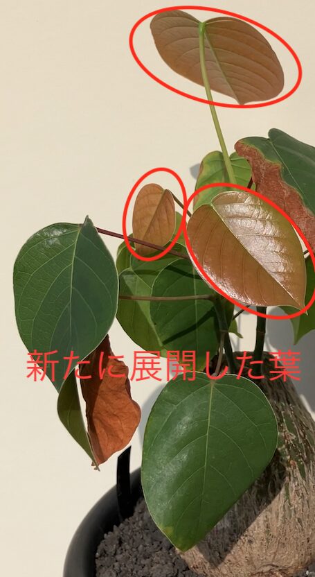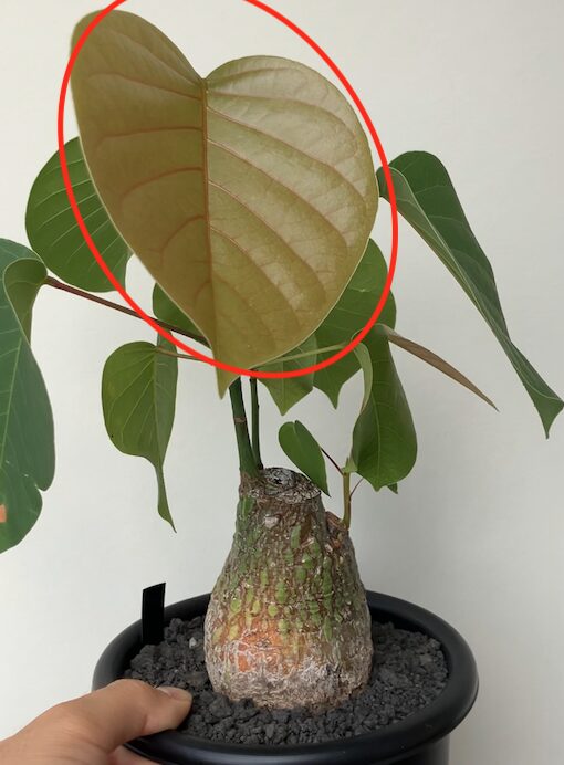また塊根植物=乾燥気味に管理、というイメージに縛られていたら、今のような成長は見られなかったかもしれません。園芸店のおっちゃんの何気ない一言が、ボンバックスの成長を一気に加速させるきっかけになったのです。