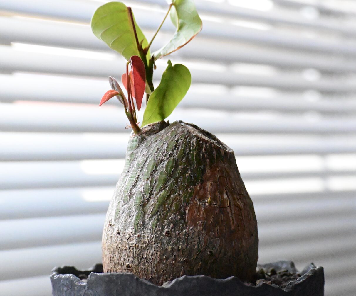 また塊根植物=乾燥気味に管理、というイメージに縛られていたら、今のような成長は見られなかったかもしれません。園芸店のおっちゃんの何気ない一言が、ボンバックスの成長を一気に加速させるきっかけになったのです。